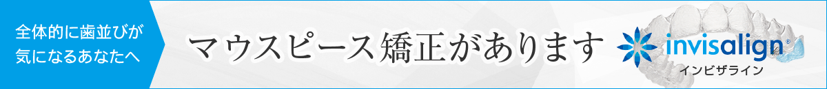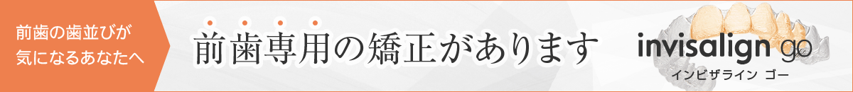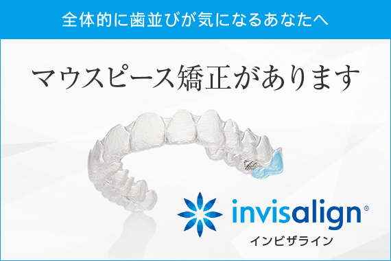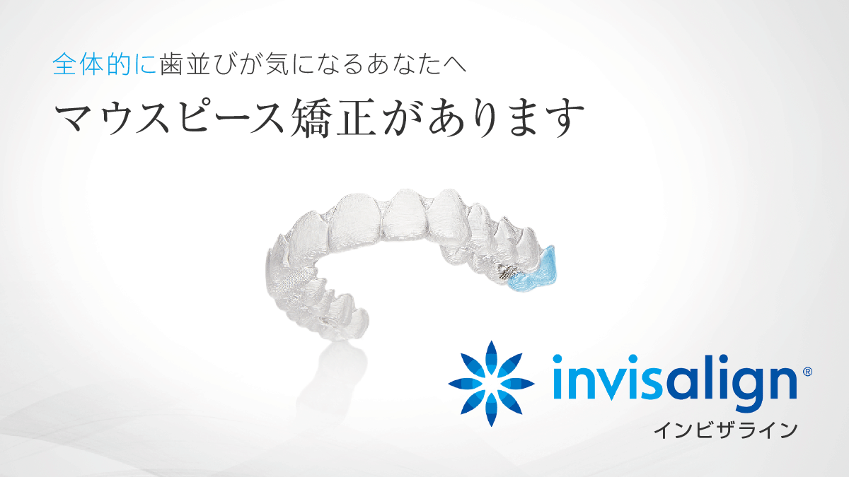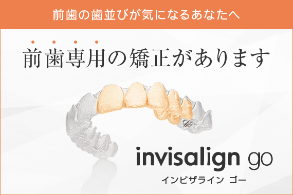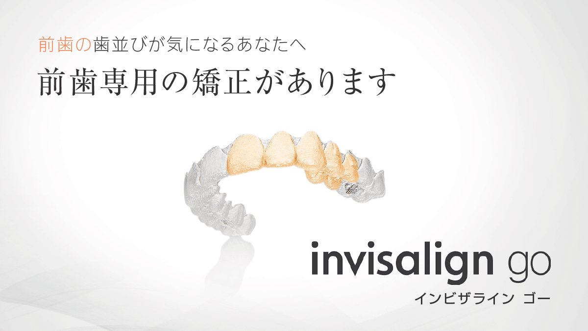 当院では、前歯の歯並びが気になる方へオススメのマウスピース矯正「インビザラインGO」、全体的な歯並びが気になる方へオススメのマウスピース矯正「インビザライン」の治療から患者様のお悩みに沿った治療が行えます。