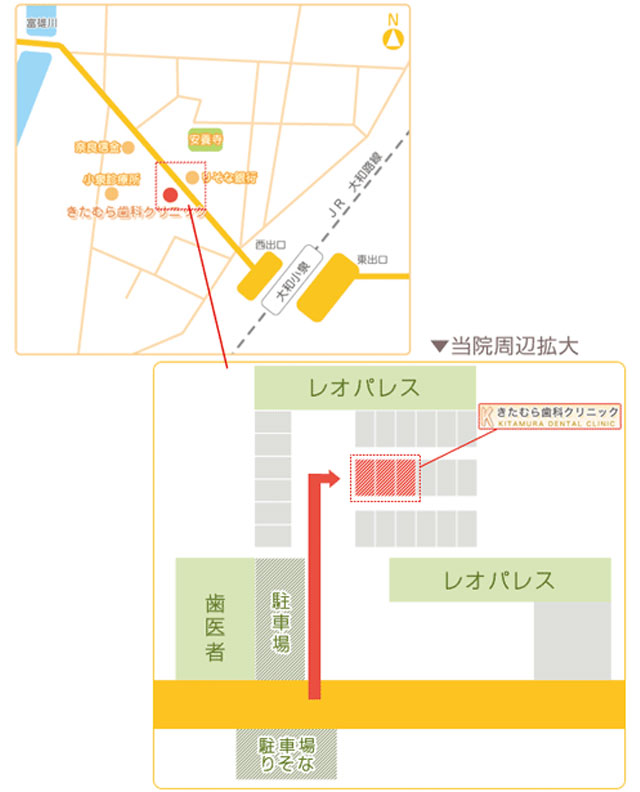きたむら歯科クリニックへのアクセスと医院案内です。