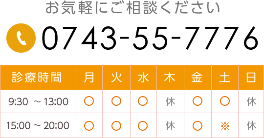 | 月曜~土曜 | 9:30~13:00/ 15:00~20:00 土曜日は18:00まで |
